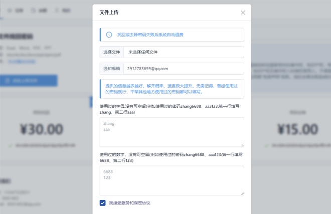 提供简单密码免费找回方式,如果免费不能找回密码,可选择付费方式极速解密